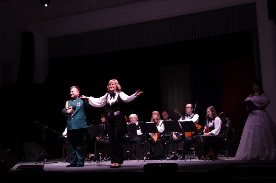 Затем зрители переместились в зал, где началось главное действо. Владимир исполнил любимые композиции под аккомпанемент оркестра народных инструментов Юлии Чайн. Концерт вела Оксана Лушникова — заслуженный работник культуры Республики Бурятия, чьи проникновенные комментарии не только связывали номера программы, но и придавали каждому выступлению особую глубину и значимость.