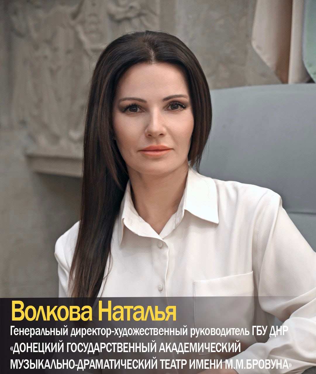 Волковой Наталье Марковне – генеральному директору – художественному руководителю Донецкого государственного академического музыкально-драматического театра им. М.М. Бровуна присвоено звание «Заслуженный деятель искусств России».