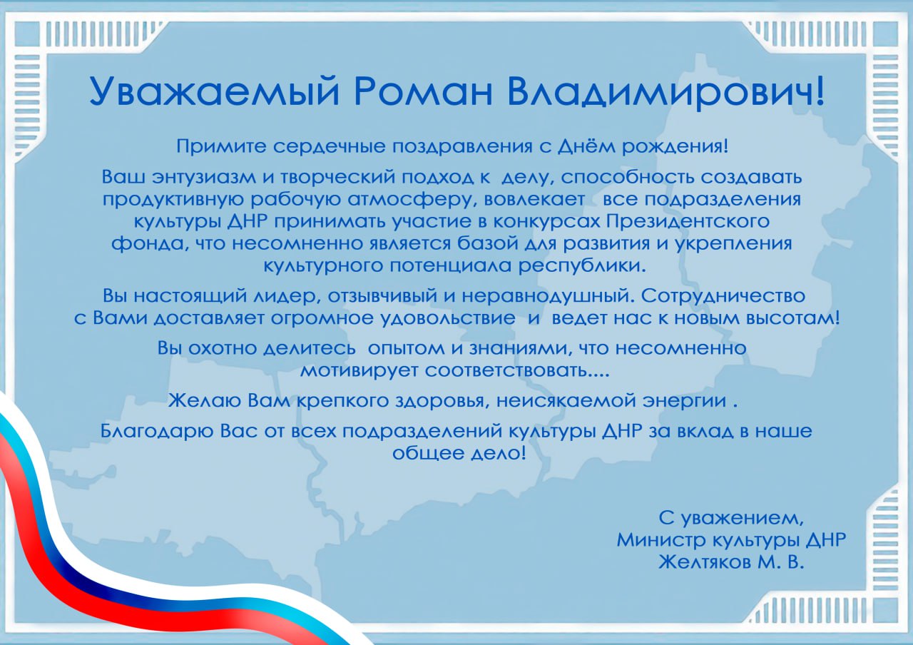 Михаил Желтяков: Сегодня отмечает день рождения генеральный директор Президентского фонда культурных инициатив Роман Владимирович Карманов