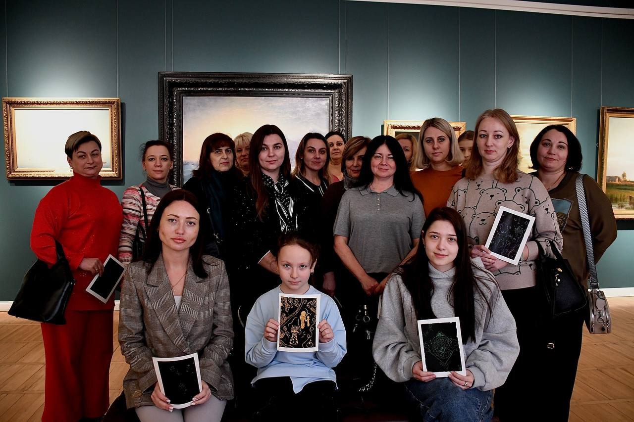 В рамках визита лектор-экскурсовод музея Волобуева Мария Геннадиевна познакомила гостей с экспозицией Донецкого республиканского художественного музея, проведя экскурсию «О чём расскажут картины». Участники встречи смогли по-новому взглянуть на произведения из музейной коллекции, узнать интересные факты о творчестве художников и эпохах, в которые создавались представленные полотна.