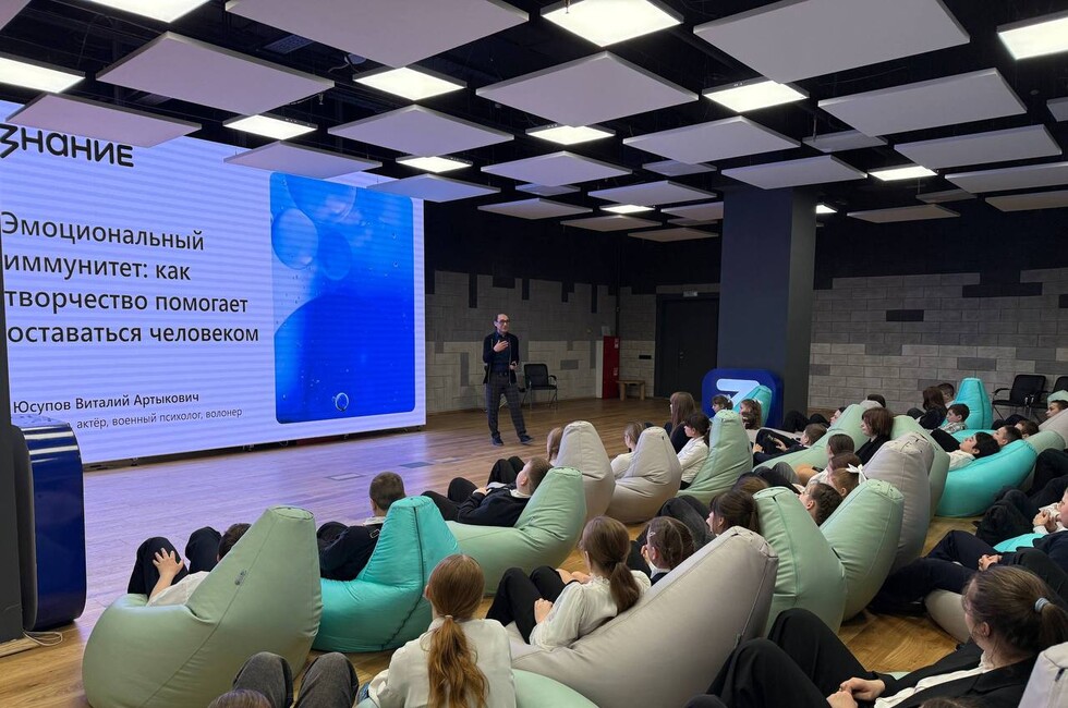 Режиссер Донецкого Нового театра представил подросткам концепцию «эмоционального иммунитета» — способность сохранять внутреннюю устойчивость в любых обстоятельствах. Лекция прошла в формате живого диалога, с яркими метафорами и примерами из театральной практики и жизни. Виталий Юсупов показал, что творческий подход — это не просто самовыражение, а мощный инструмент для преодоления стресса.