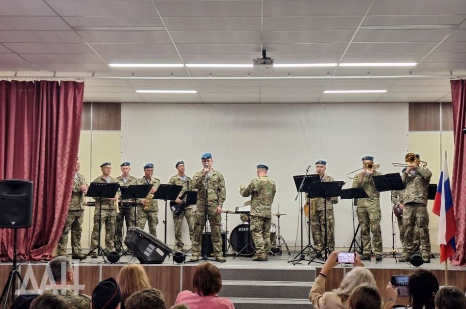 Донецк, 25 сен — корр. ДАН. Концерт фронтовой агитбригады Воздушно-десантных войск прошел в донецкой школе №115 имени кавалеров орденов Мужества Ивана Коковина и Майкла Глосса. Выступление длилось полтора часа и вызвало овации аудитории...