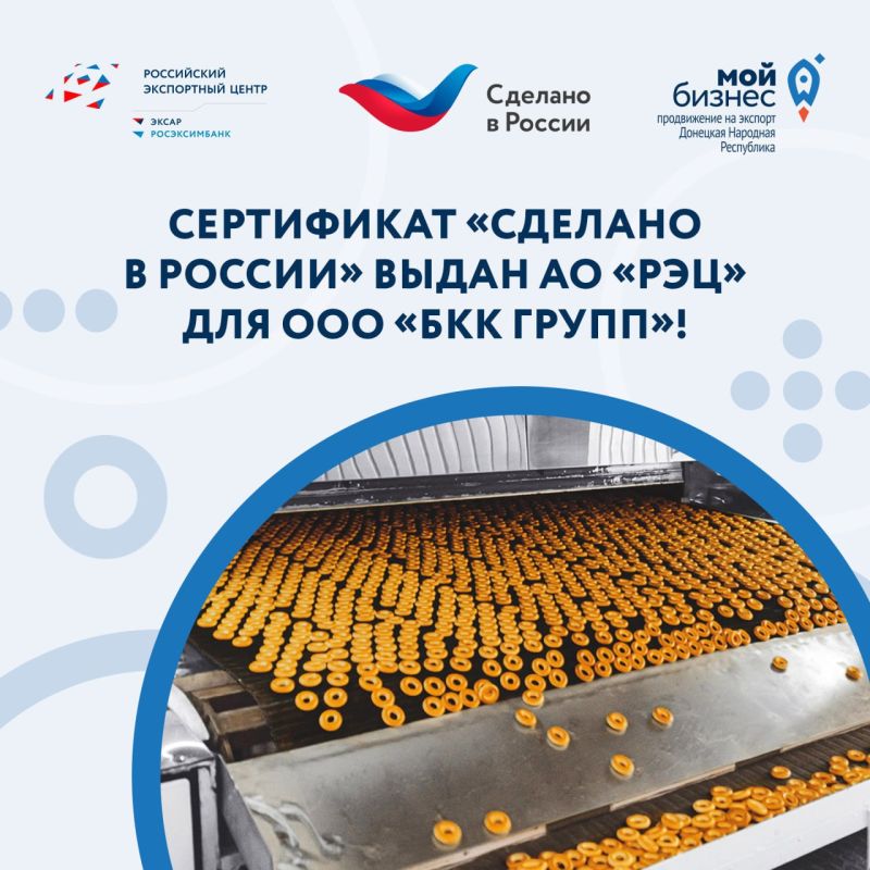 Еще одно предприятие Донецкой Народной Республики получило сертификат «Сделано в России» от РЭЦ!