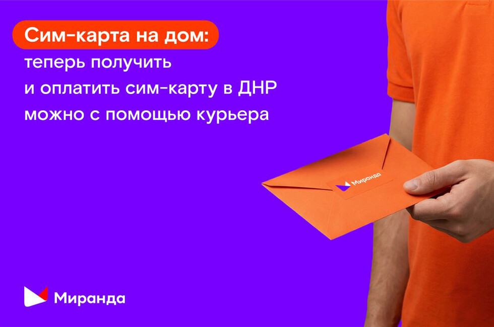 Донецк, 25 мар — ДАН. ГК «Миранда-медиа», оператор цифровых услуг федерального уровня (далее — «Миранда»), объявляет о новых возможностях доставки сим-карт в Донецкой Народной Республике с помощью курьерской службы. Теперь абоненты могут выбрать наиболее удобный сценарий оформления заказа: полностью дистанционный или смешанный, с внесением персональных данных и оплатой непосредственно при встрече с курьером.