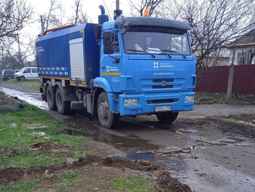 Ремонтная бригада из 4 человек с привлечением 2 единиц спецтехники выполнила раскопку котлована, откачивание стоков илососом и обследование аварийного участка.