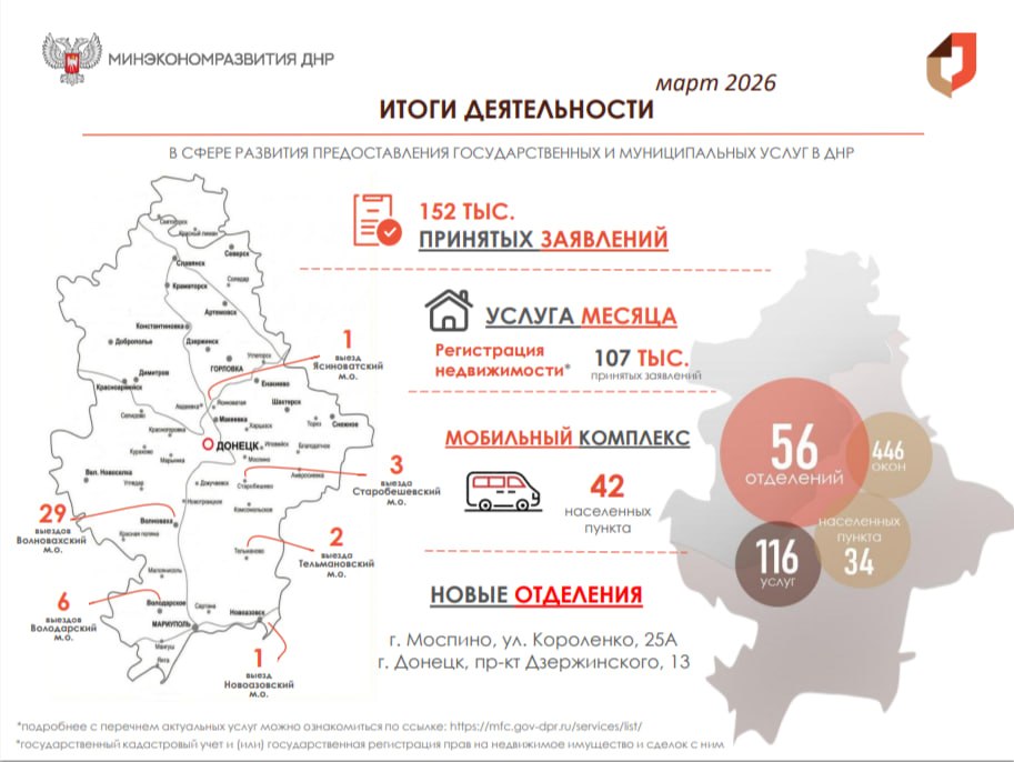Делимся краткими итогами деятельности Минэкономразвития в сфере развития МФЦ ДНР за март 2026 года