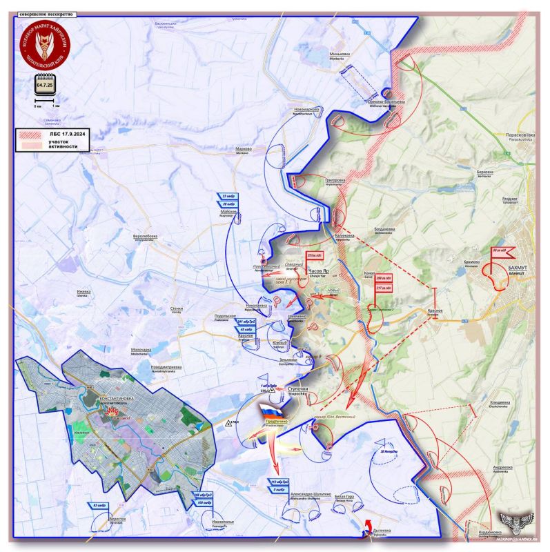 Наглядно на карте – ситуация на Константиновском направлении.На гарнизон противника в Константиновке продолжает давить наша группировка «Юг»Бои идут в юго-восточной части в частном секторе.Также бои идут в...