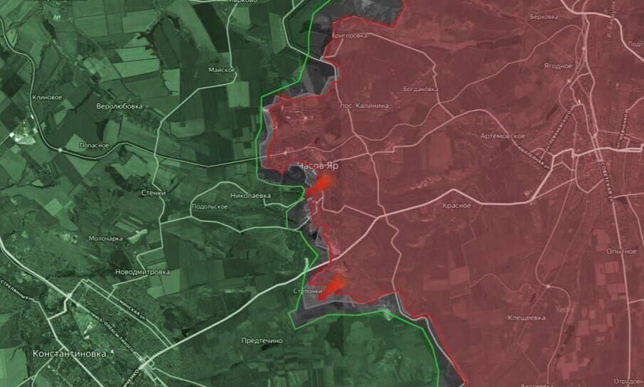 Российские бойцы, продвинувшись в окрестностях Часова Яра, начали брать в охват группировку ВСУ, дислоцированную у Николаевки. Об этом ТАСС сообщил военный эксперт Андрей Марочко. // ТАСС