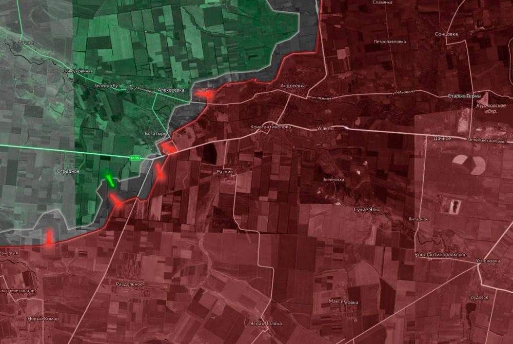 «На Кураховском направлении ВС РФ взяли под контроль большую часть села Богатырь.В случае потери контроля ВСУ над этим н.п усилится давления ВС РФ на н.п. Отрадное, а также откроется путь для продвижения...