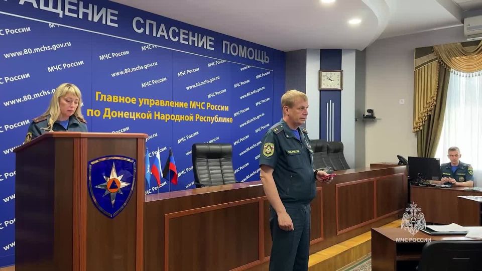 В зале совещаний Главного управления МЧС России по ДНР прошло награждение сотрудников, проявивших исключительное мужество и самоотверженность в своей работе. Глава регионального ведомства, Алексей Кострубицкий выразил благодарность личному составу за их труд и преданность делу.