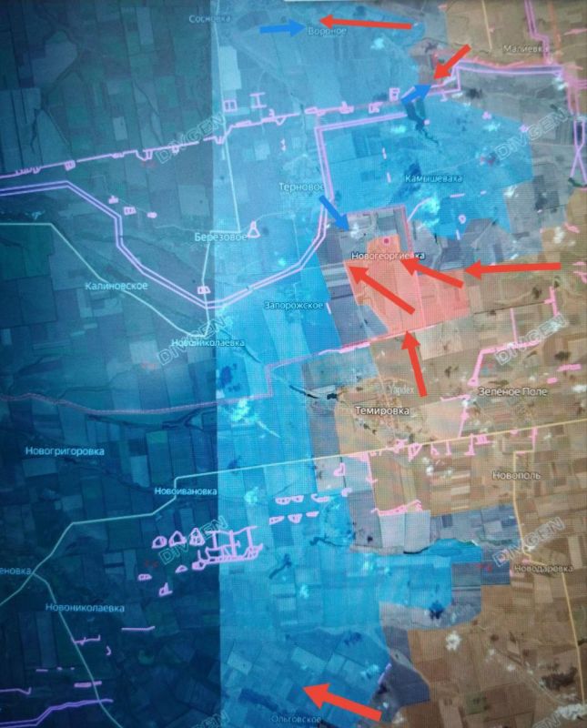 За последние сутки наши подразделения, обходя район обороны противника у Камышевахи, продвинулись севернее Темировки и освободили н.п. Новогеоргиевка (юго-западнее Камышевахи).