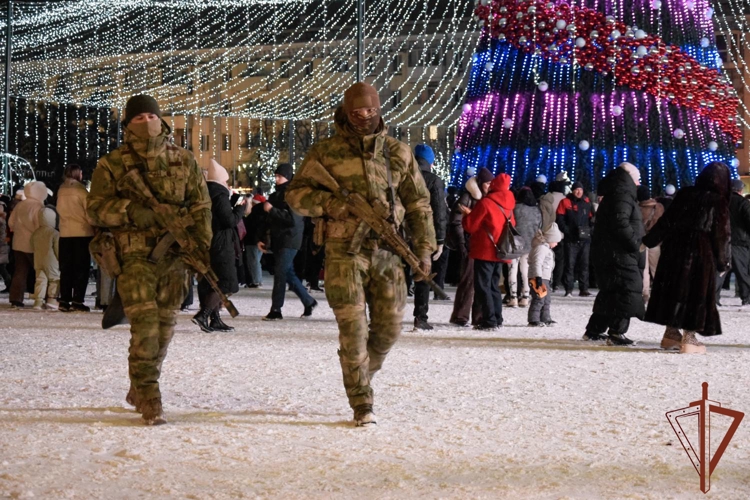 В новогоднюю ночь личный состав Росгвардии, выполняющий задачи в зоне специальной военной операции, в усиленном режиме обеспечивал охрану общественного порядка и безопасность.