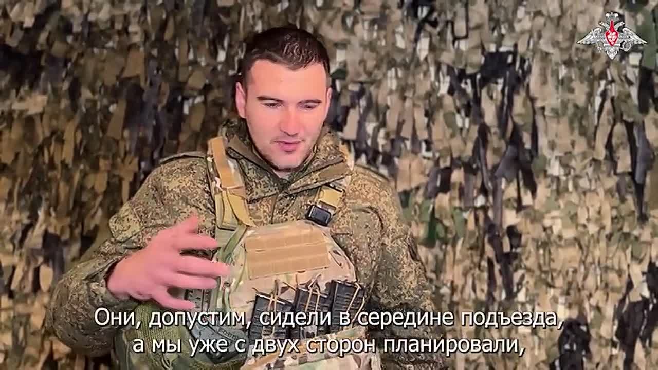 «Противник, во-первых, не ожидал, что будет такой резкий наплыв. У них какая-то там расслабленность была. Они по пятиэтажкам ходили, гуляли. Мы это наблюдали, видели. И просто в один момент накопили несколько малых групп, спланировали подрыв, грубо говоря, крайнего подъезда. Изобретали вообще много всего интересного. Какие-то «лисьи норы» в подъездах делали. Из подъезда в подъезд мы малыми перебежками передвигались».