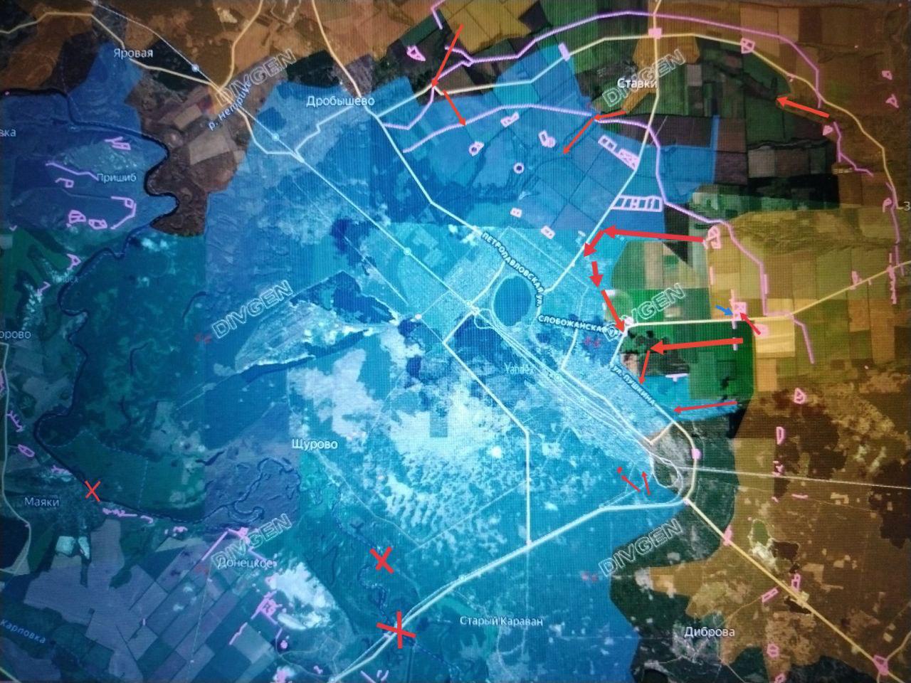 Выведены из строя переправы противника в районе Стародубовки, откуда ВСУ прут на Брусовки, в район Дибровы и в районе Щурово.