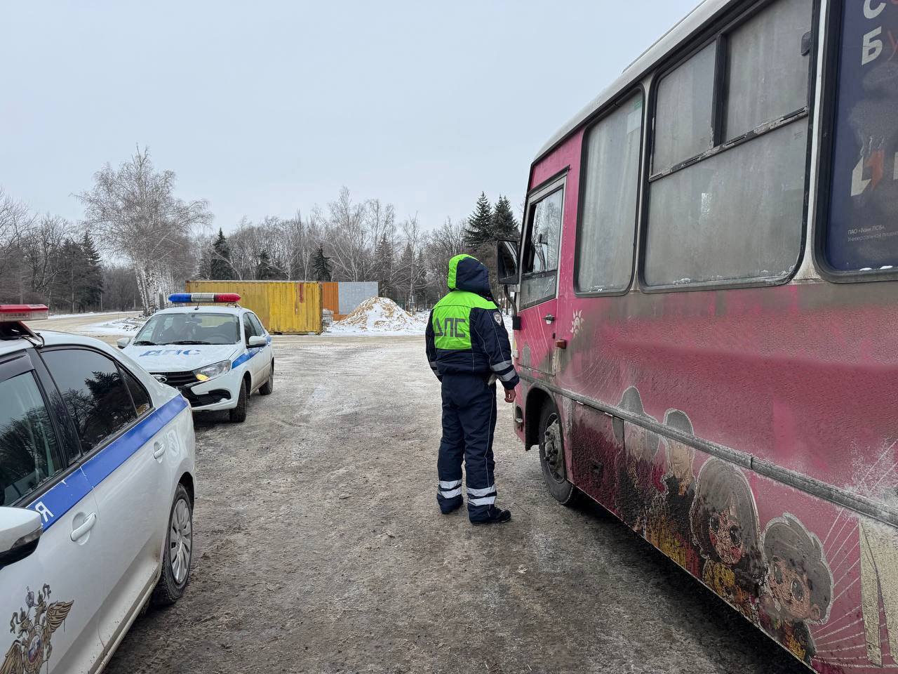 Сотрудники Госавтоинспекции проводят проверку пассажирского автотранспорта