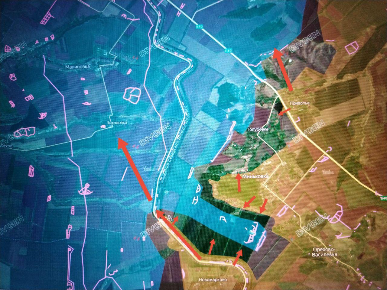 За последние дни наши подразделения наступали и продвинулись, выбив противника севернее Новомарково из ряда позиций вдоль канала Северский Донец — Донбасс. В результате ряд опрных пунктов ВСУ между каналом и Миньковкой оказались в полуокружении.