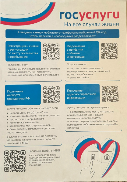 В настоящее время для граждан Российской Федерации доступна возможность получения государственных услуг в сфере миграции с использованием федеральной государственной информационной системы «Единый портал государственных и муниципальных услуг» (www.gosuslugi.ru).