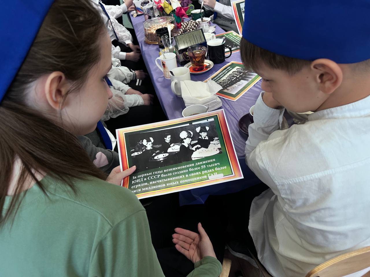 В ходе праздничного чаепития инспекторы рассказали ребятам об истории создания ЮИД, напомнили о важной роли отрядов в воспитании у учащихся чувства социальной ответственности и культуры участника дорожного движения.