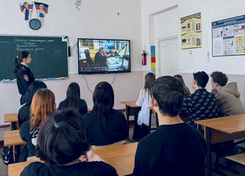 Кроме того, ученикам был продемонстрирован фильм «Наша работа», подготовленный сотрудниками ОМВД России «Докучаевский».