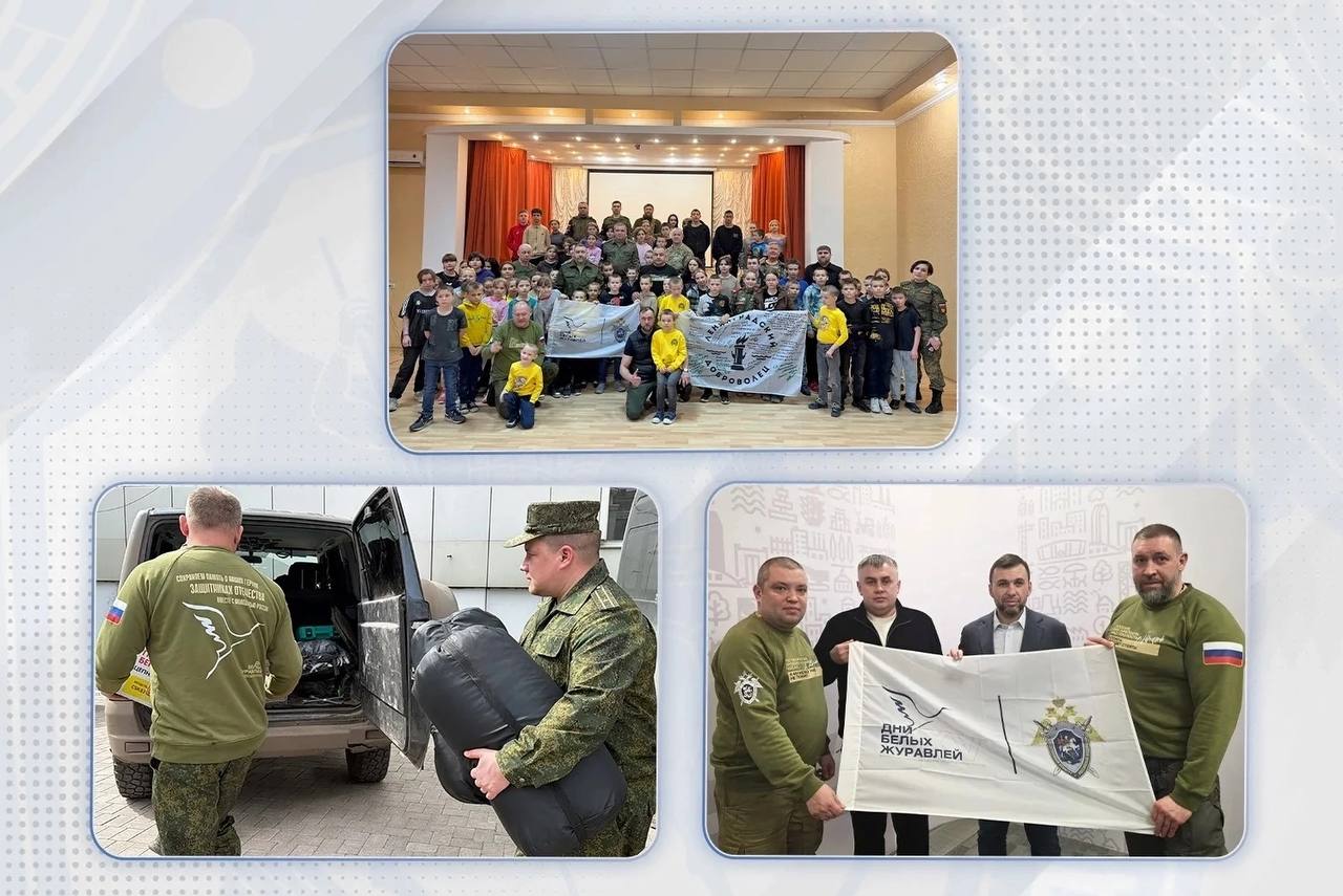 Сотрудники Главного военного следственного управления и управления собственной безопасности центрального аппарата Следственного комитета Российской Федерации совместно с представителями Санкт-Петербургской общественной организации союза ветеранов подразделений специального назначения органов правопорядка и безопасности «Тайфун», Просветительского центра патриотического воспитания «Ленинградский доброволец» и священником Санкт-Петербургской епархии Русской православной церкви совершили визит в Донецкую Народную Республику. В ходе поездки в рамках Всероссийской акции памяти «Дни белых журавлей» были проведены различные мероприятия, направленные на поддержку местного населения и детей, а также на укрепление взаимодействия с военными следственными органами.
