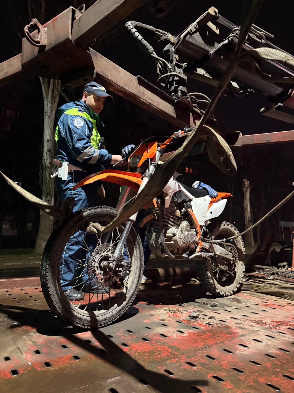 В Донецке сотрудники Госавтоинспекции при надзоре за дорожным движением остановили питбайк, за рулем которого находился 16-летний юноша, не имеющий водительского удостоверения.