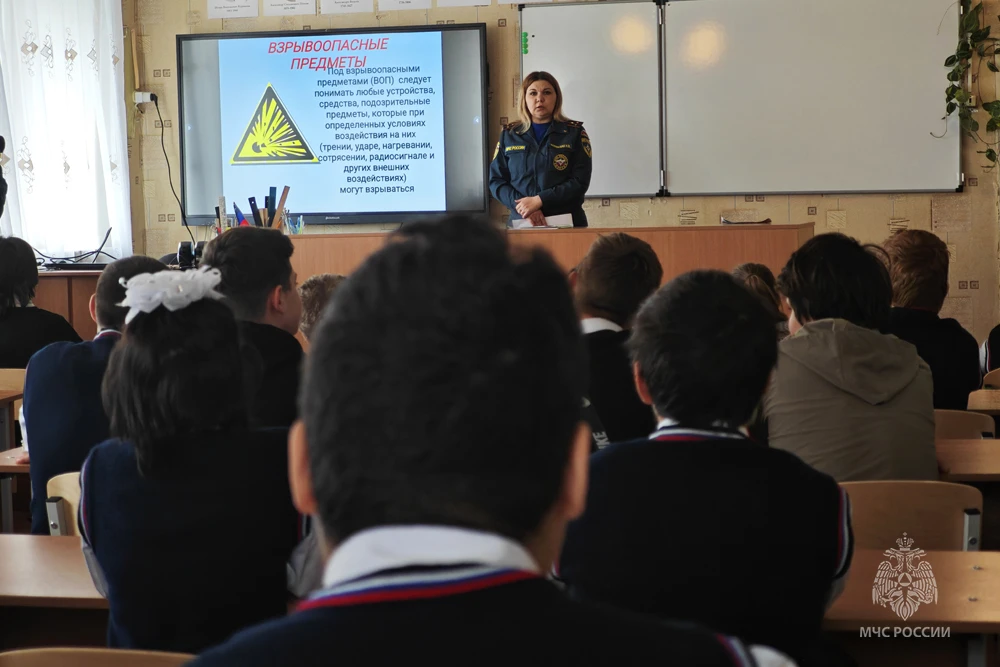Сотрудники МЧС России провели урок безопасности в одной из школ Шахтёрска.