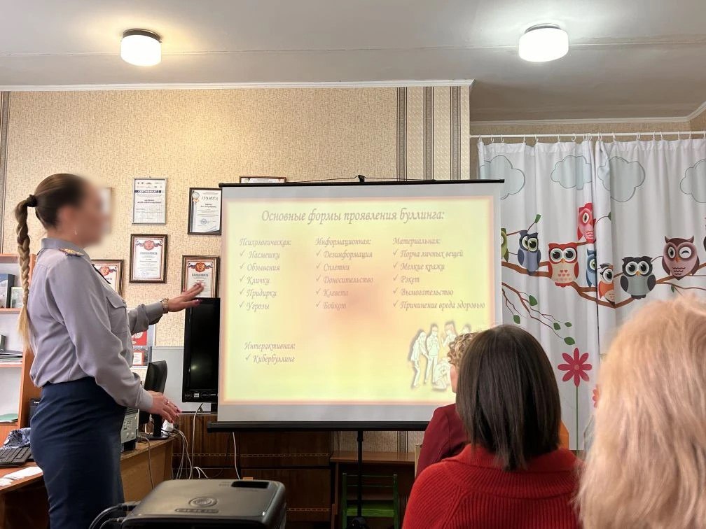 В рамках семинара, посвященного профилактике буллинга среди несовершеннолетних, начальник филиала УИИ по Пролетарскому району г. Донецка выступила с докладом, рассказав присутствующим о правовом регулировании противодействия буллингу в Российской Федерации. Сотрудники уголовно-исполнительной инспекции подготовили также тематическую презентацию для демонстрации в общеобразовательных учреждениях с целью профилактики конфликтов и поддержания благоприятного психологического микроклимата среди подростков.