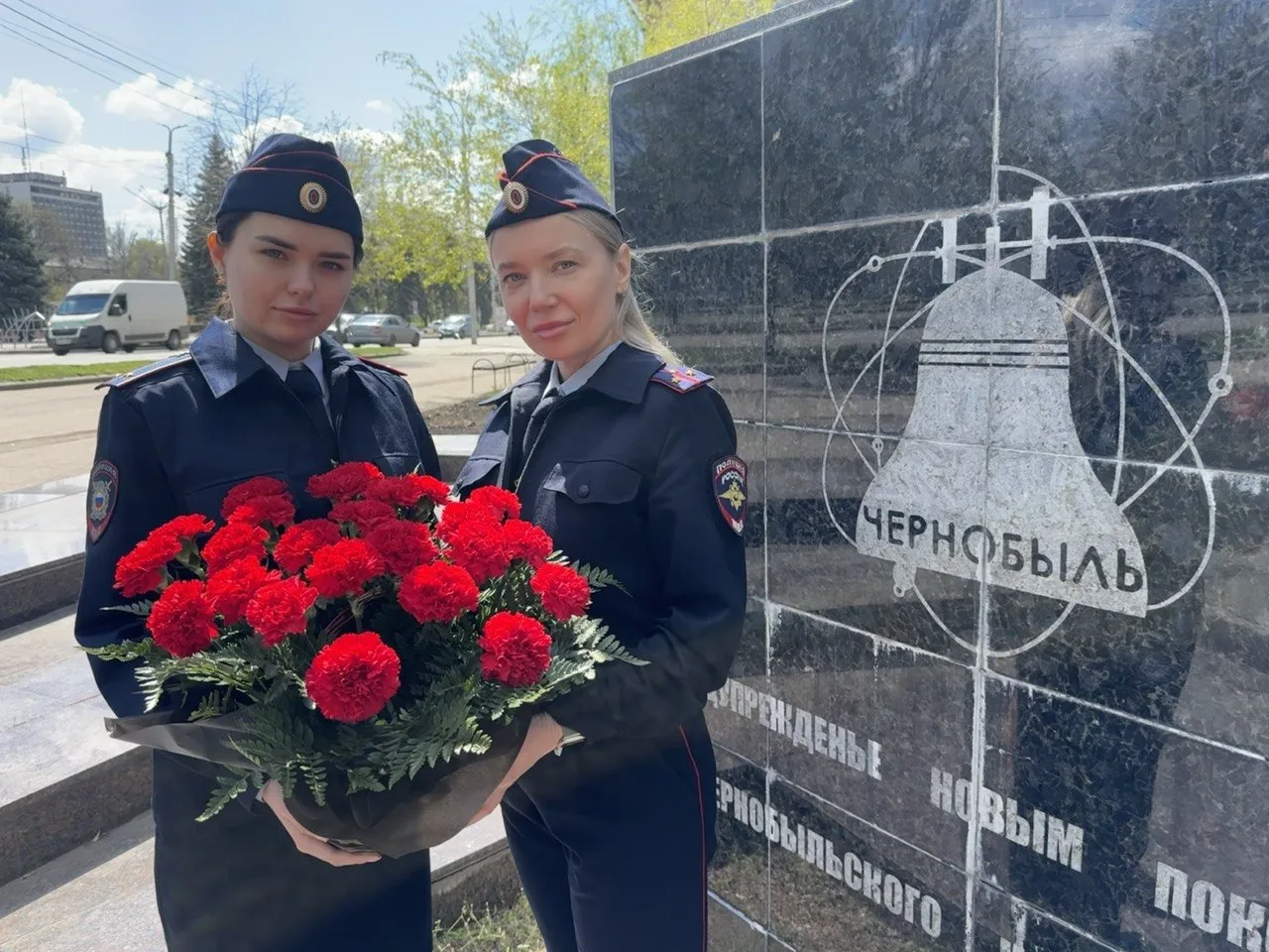 В преддверии 40-й годовщины катастрофы стражи правопорядка почтили память погибших ликвидаторов и возложили цветы к памятнику жертвам аварии на Чернобыльской АЭС.