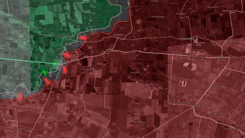 «На Кураховском направлении ВС РФ атакуют в центральной части села Богатырь. На севере населенного пункта ВСУ пытаются контратаковать, но вынуждены отходить из-за натиска российских сил.