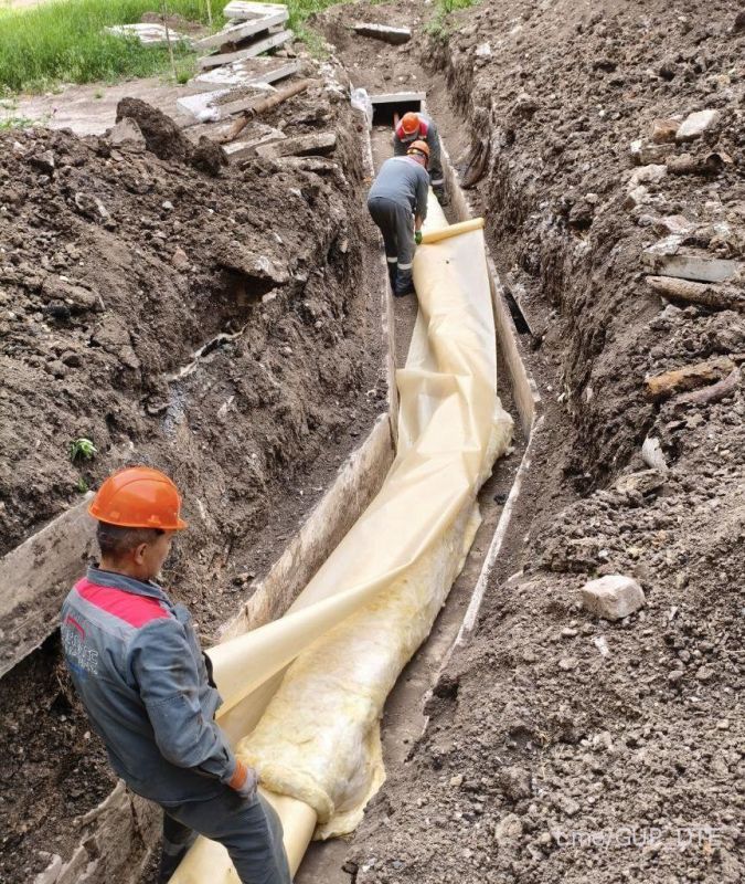 Во время работ старую теплотрассу демонтировали, траншею очистили, а новый трубопровод установили с соблюдением всех необходимых уклонов и опорных точек. Трубу также утеплили, что увеличит ее срок службы и снизит теплопотери.
