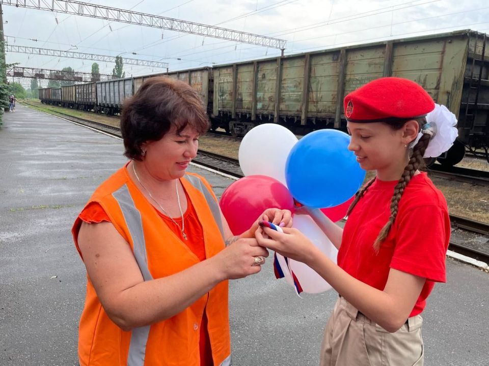 Юнармейцы ВПТК "Тимуровцы" и ВПСК "СПАРТАК" в предверии Дня России совместно с Начальником Местного отделения Рыбалевой О. А. и руководителем Талах И.Ю., поздравили жителей города и работников ПТО станции Каракуба ВЧД Иловайск Донецкого филиала ФГУП "ЖДН" с Днем России! Вручили им ленточки и шарики, как символ страны!
