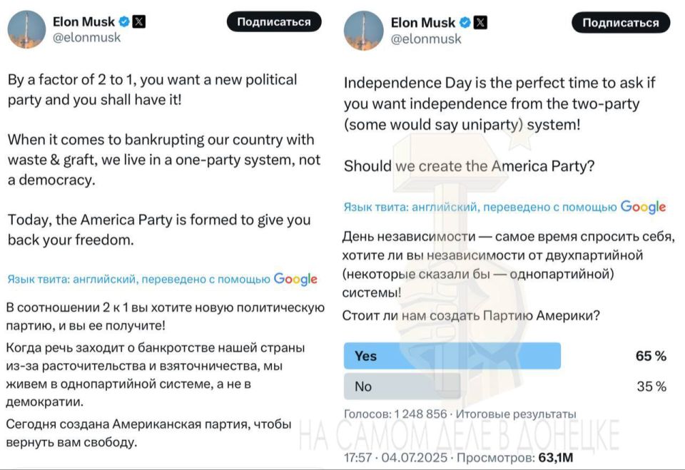 Решение последовало после опроса в X, где 65,4% из 1,2 млн участников поддержали создание новой партии.