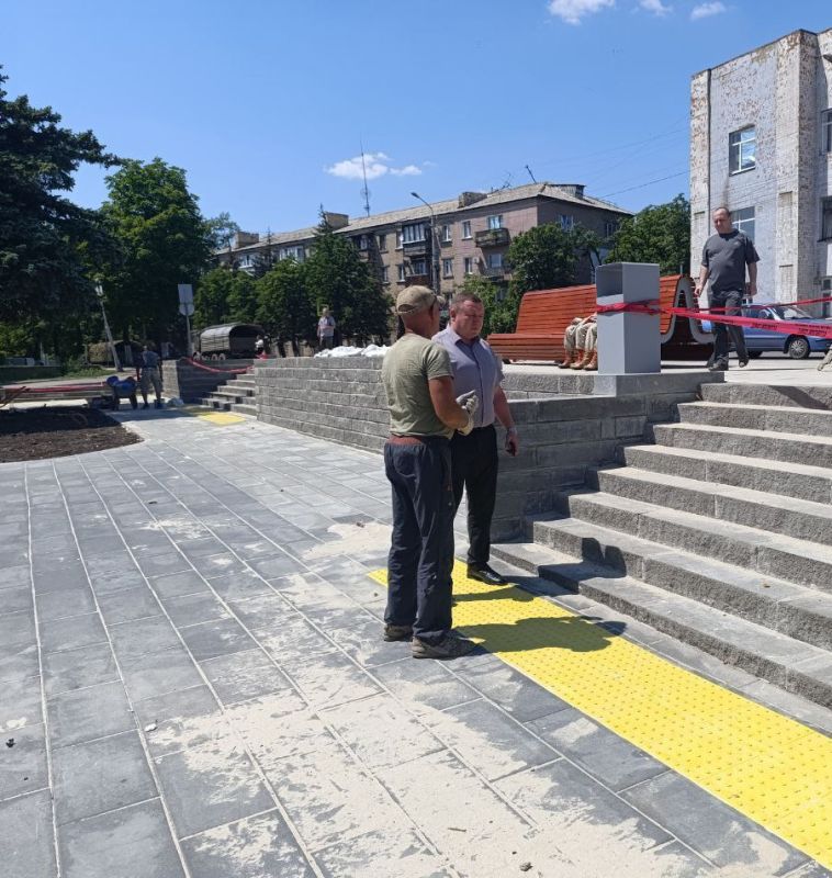 8 июля проинспектировал текущий процесс ремонтных работ, проводимых на центральной площади. В ходе беседы с работником подрядной организации акцентировал необходимость строгого соответствия выполняемых работ.