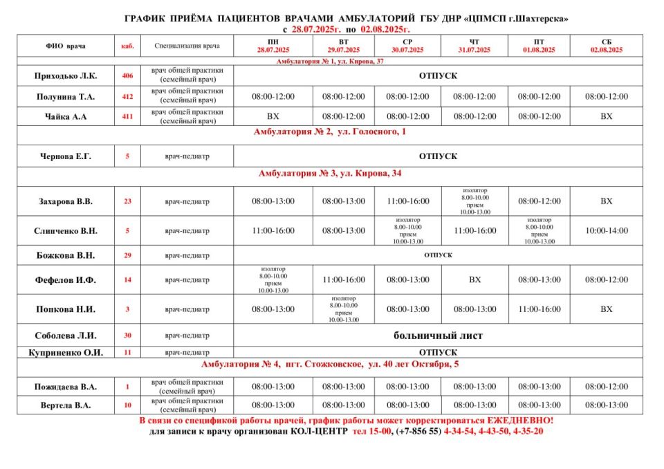 Александр Шатов: ВниманиеИнформация о графике приемов врачами и врачами-педиатрами