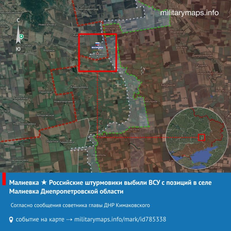 Малиевка Российские штурмовики выбили ВСУ с позиций в селе Малиевка Днепропетровской области, сообщил советник главы ДНР Кимаковский https://t.me/ukr_2025_ru/257740