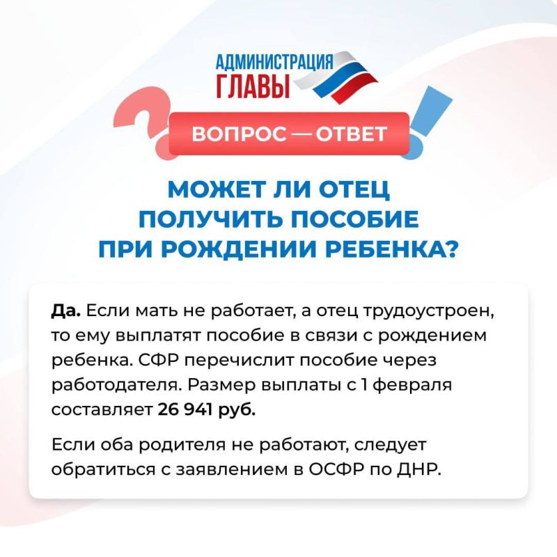 Предусматривает ли закон выплату пособия по рождению ребенка отцу? Ответ в карточке.