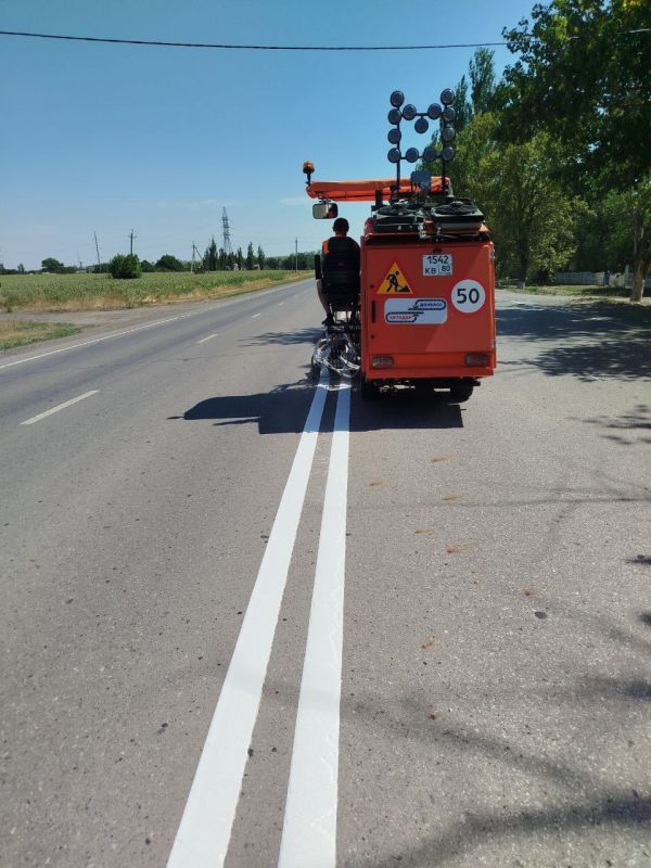За минувшие сутки нанесли более 9,6 тыс. кв. м дорожной разметки на автодорогах Амвросиевка - Тельманово - Мариуполь и Волноваха - Тельманово.