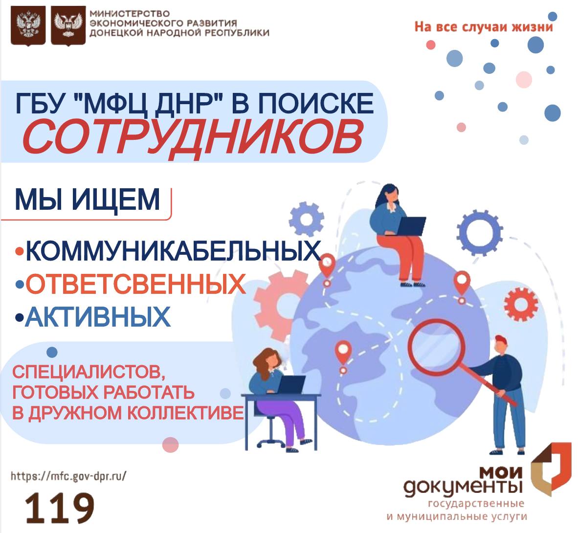 ГБУ "МФЦ ДНР" в поиске сотрудников для работы в Многофункциональном центре