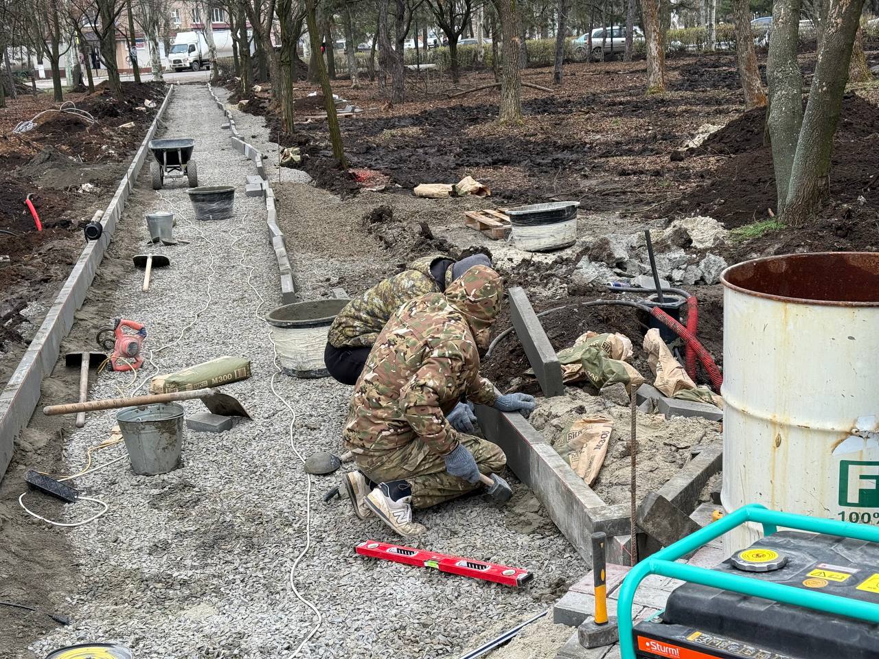 Параллельно продолжаются работы по обустройству пешеходных дорожек, которые свяжут все ключевые зоны отдыха. Кроме того, на некоторых аллеях уже установлены новые фонари.