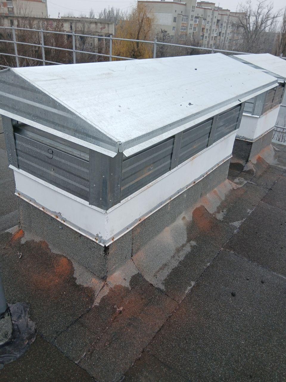 Бригада из региона-шефа провела монтаж водосточной системы, оклейку примыканий и деформационных швов, ремонт крышек вентиляционных каналов и монтаж парапетных отливов на кровле жилого дома на улице Патона.