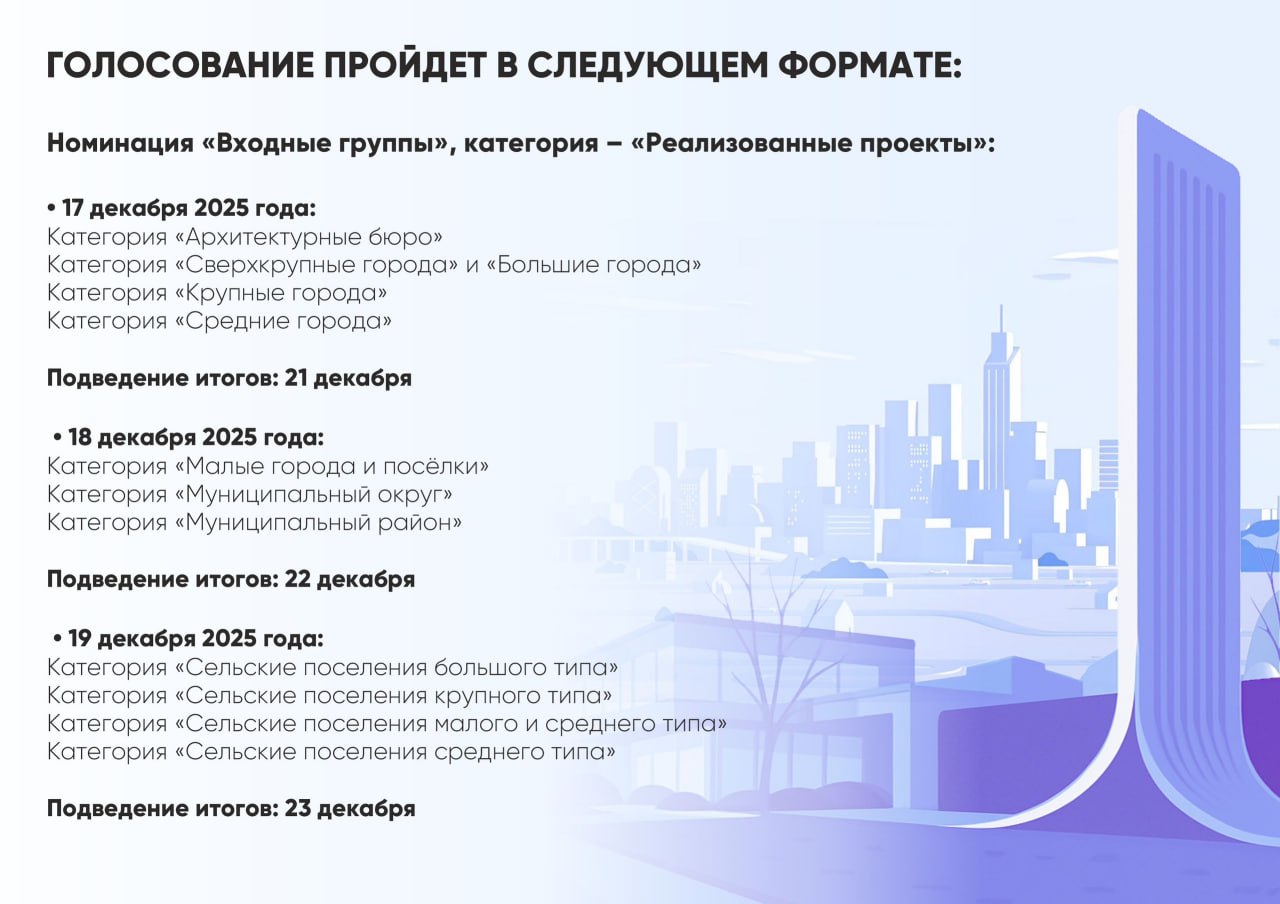 Онлайн-голосование пройдет с 10 по 23 декабря на платформе сообщества «ГорСреда» в социальной сети ВКонтакте: https://vk.com/gorsredaa.