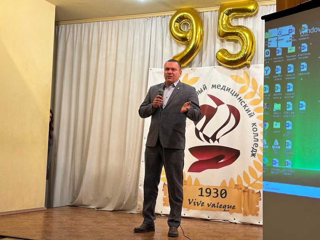 Вместе с министром здравоохранения ДНР Константином Масниковым поздравил с юбилеем коллектив колледжа. В своем выступлении отметил, что на протяжении 95 лет колледж является кузницей кадров для системы здравоохранения. Здесь закладывается не только прочный фундамент профессиональных знаний, но и формируются лучшие человеческие качества, так необходимые будущим медикам.