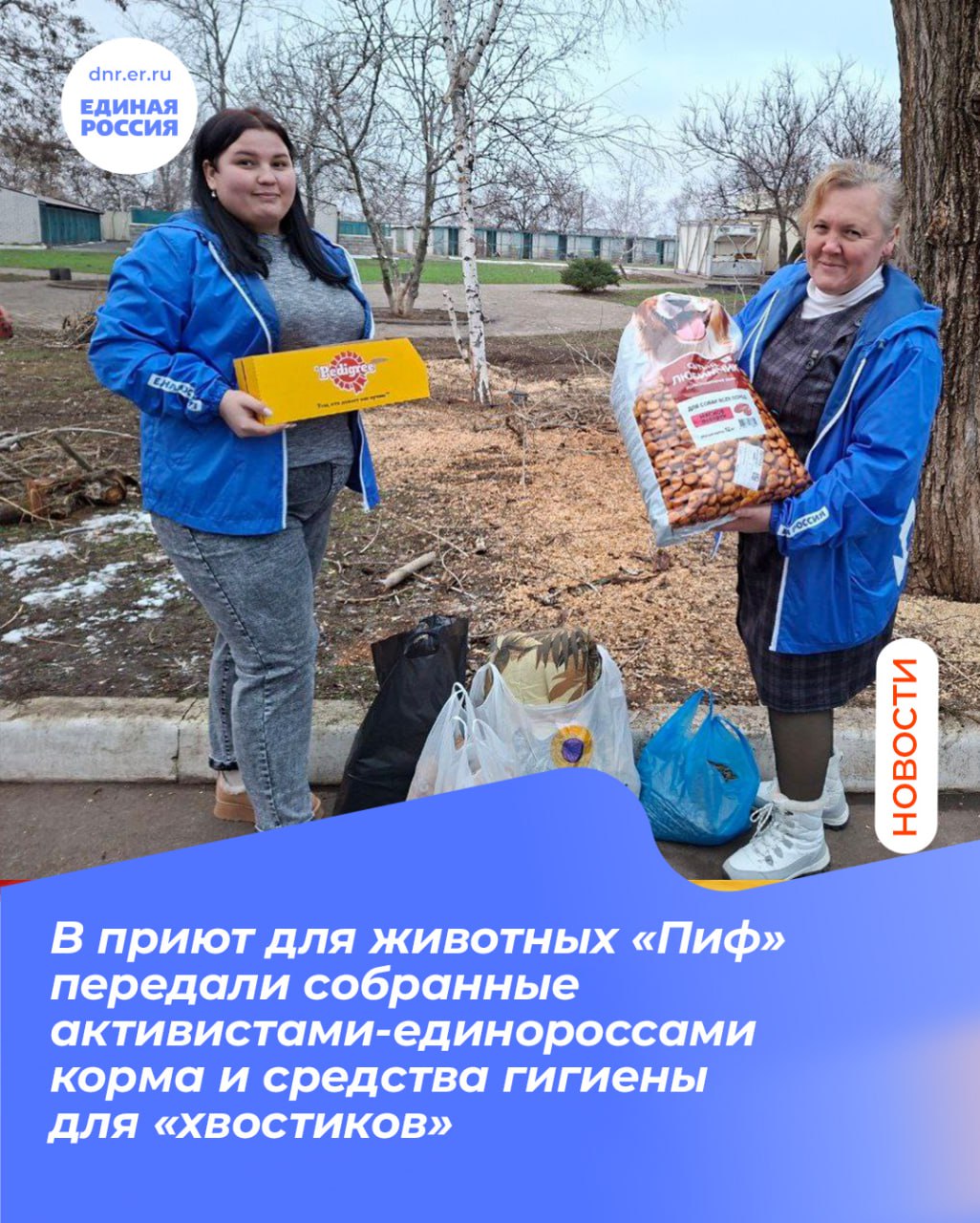 По партийному проекту «Защита животного мира» активисты Всероссийской политической партии «Единая Россия» совместно с сотрудниками Управы Киевского внутригородского района организовали визит в приют для животных «Пиф». Они передали хвостикам собранные корма и необходимые средства гигиены, чтобы внести свой вклад в их благополучие.