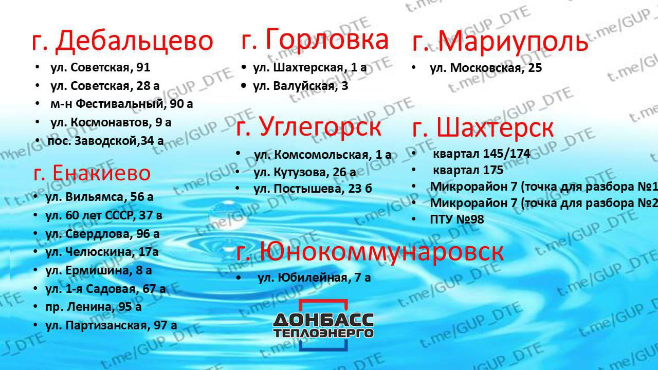ПЕРЕЧЕНЬ ТОЧЕК РАЗБОРА ТЕХНИЧЕСКОЙ ВОДЫ НА СКВАЖИНАХ «ДОНБАССТЕПЛОЭНЕРГО»