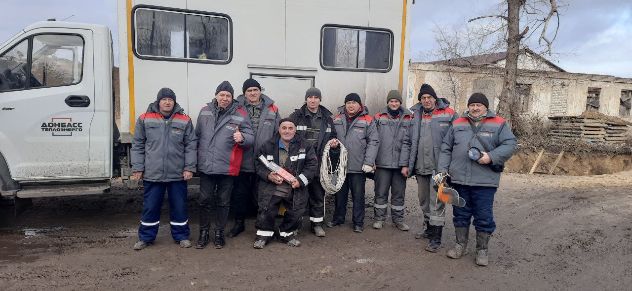 Бригада Филиала "Донецктеплосеть" работает в составе электрогазосварщиков Роберта Овчияна, Романа Березина и Сергея Ильченко, а также водителей Сергея Шашкова и Петра Дутикова.