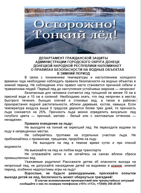 Зимой на водоёмах важно соблюдать правила безопасности, связанные с переходом по льду, зимней рыбалкой и катанием. Также важно учитывать экстренные ситуации