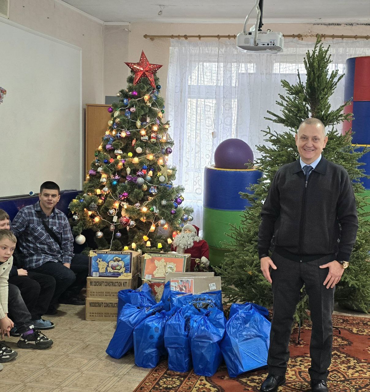 От имени Комитета Народного Совета ДНР по поддержке участников СВО и Донецкой республиканской региональной организации "Российский союз ветеранов Афганистана" поздравили с наступающим Новым годом учеников и сотрудников школы.