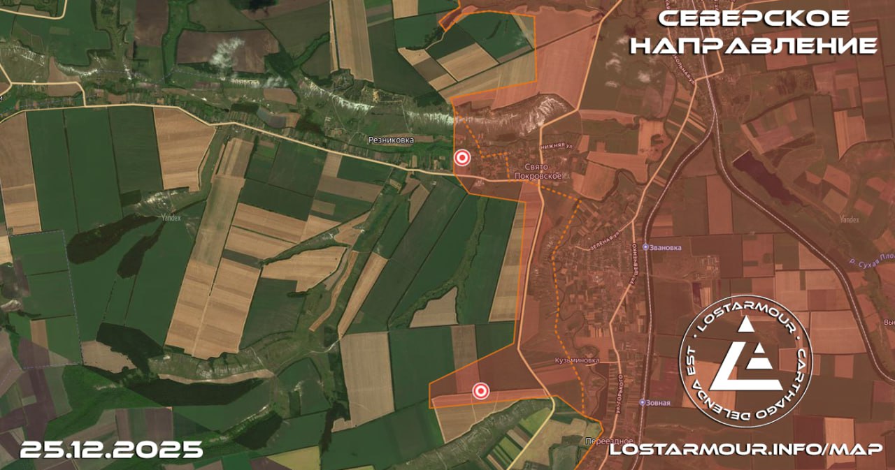 Фронтовая сводка на утро 25.12.25Запорожский фронтПродолжаются бои в Приморском и Степногорске. Есть продвижение в районе Лукьяновского. (Рис. 1.1)На Гуляйпольском направлении войска РФ перешли реку Гайчур у Радостного...