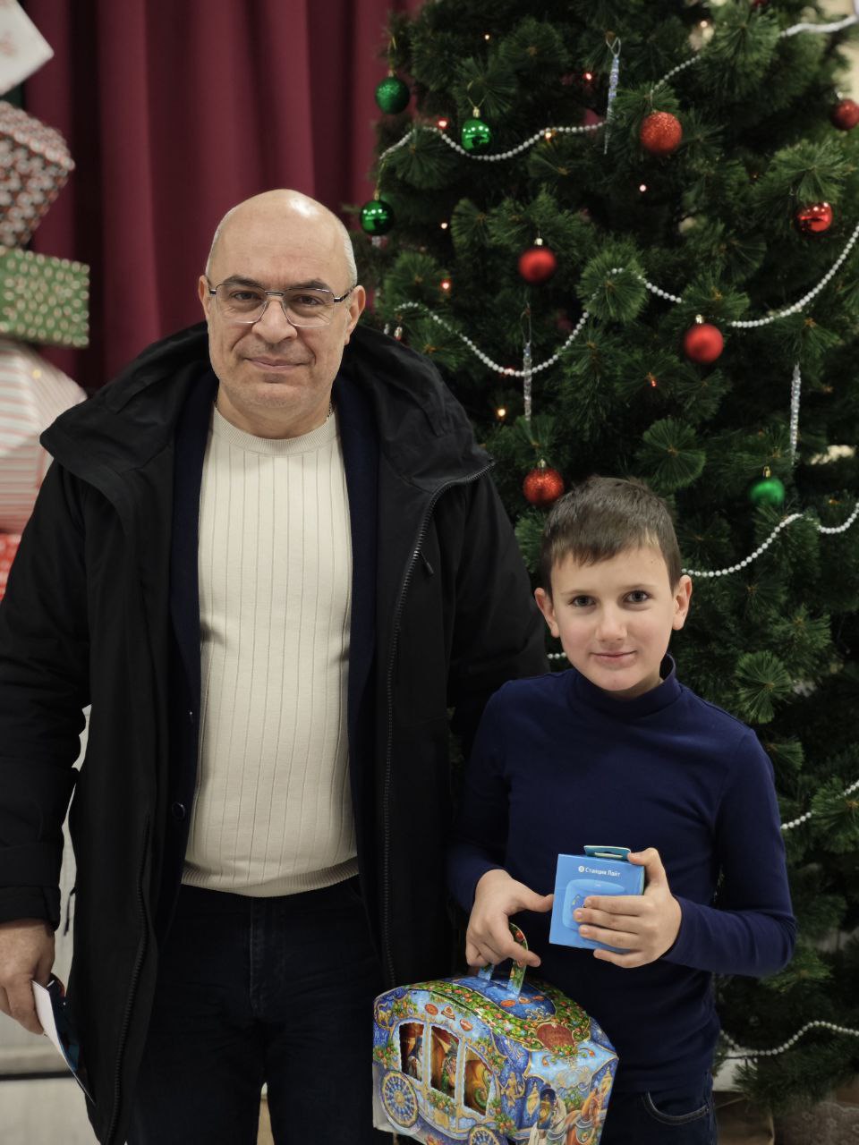 Первый заместитель главы администрации городского округа Дебальцево Максим Вельма исполнил желание юного жителя города Светлодарска. Максим Владимирович подарил Святославу умную колонку и сладкий новогодний подарок.