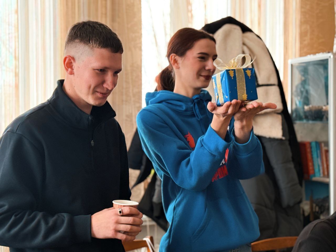 Александр Леонидович выразил благодарность ребятам за их плодотворную работу, поздравил с наступающим Новым годом и Рождеством Христовым и вручил подарок.